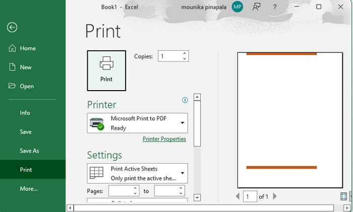 现在,颜色已添加到页眉中。如果您打印Excel工作簿,您可以在屏幕上看到下面的图像。要打印,可以使用 Ctrl + P 。