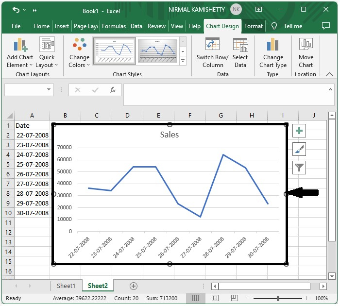 在这里,我们将首先创建一个图表,然后对其进行格式化以更改日期格式。让我们看一个在Excel中应用日期的自定义数字格式的简单过程。
