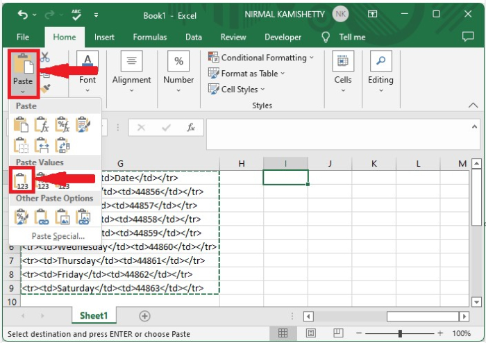 选择新的数值,用键盘快捷键CTRL+C复制它们。现在点击一个空单元格,点击 “粘贴”,然后选择 “作为数值粘贴”。