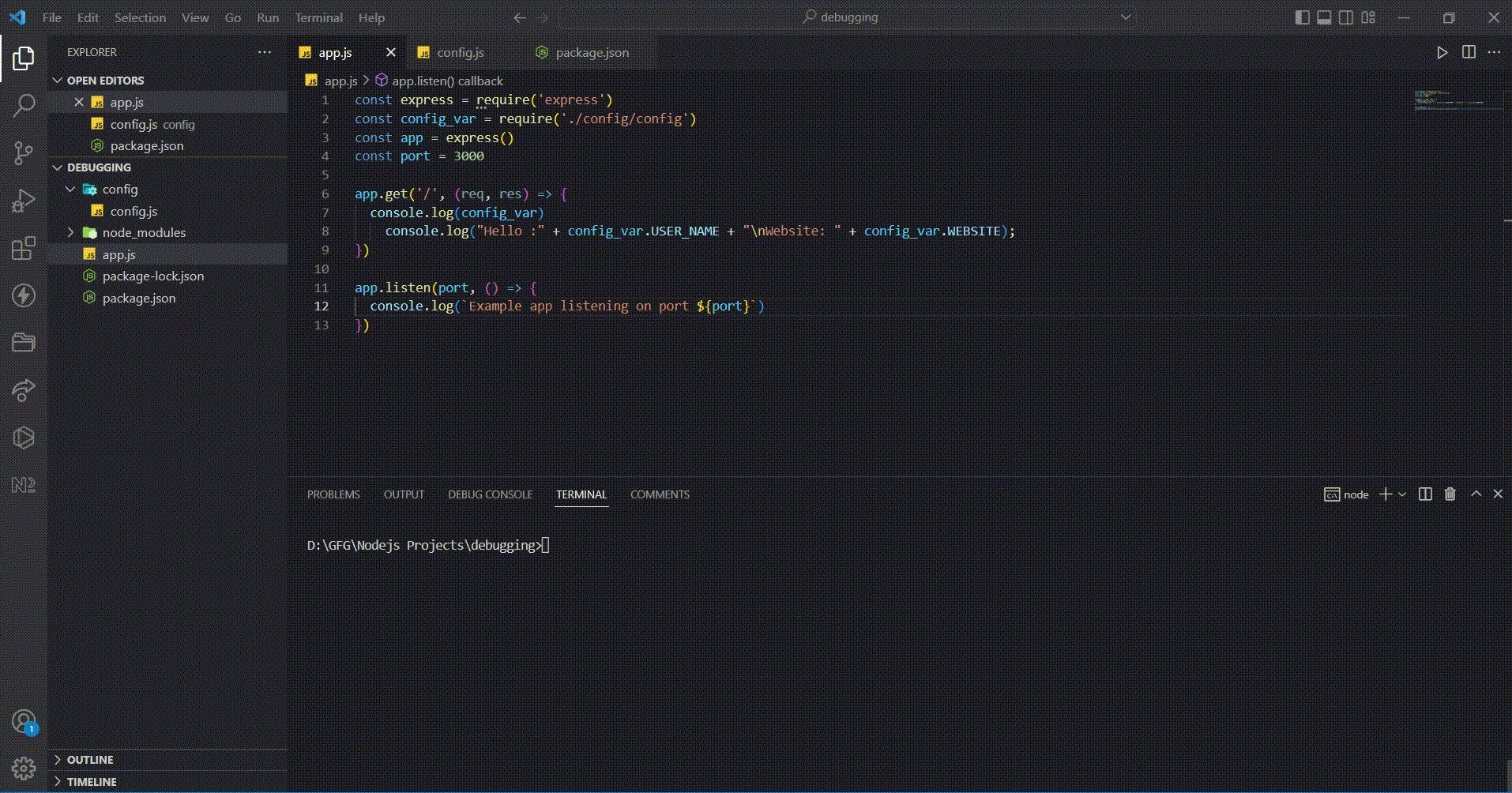 现在,在express应用程序中,我们需要使用以下行配置这个 dotenv 包。