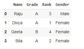 df2 = pd.DataFrame({'Name':['Raju', 'Divya', 'Geeta', 'Sita'],