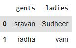 df = pd.DataFrame(data=[['sravan', 'Sudheer'],