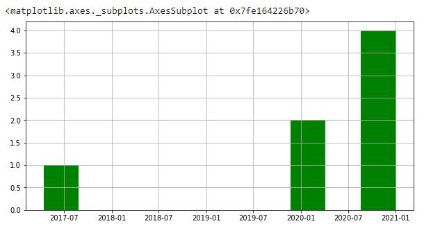 示例8:程序显示具有DateTime对象的数据框的柱状图。