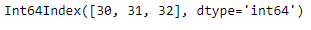 正如我们在输出中所看到的,该函数返回了一个Index对象,其中包含DatetimeIndex对象的每个条目中存在的分钟值。这里的30、31和32是DatetimeIndex对象的条目中的分钟值。